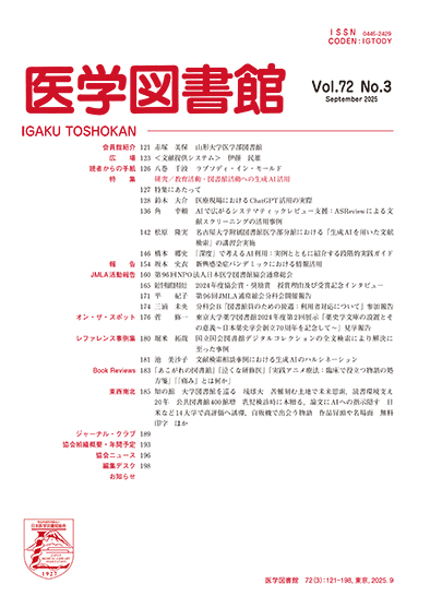 Journal@rchiveにおいて,医学図書館誌のBack Numberが公開されました。